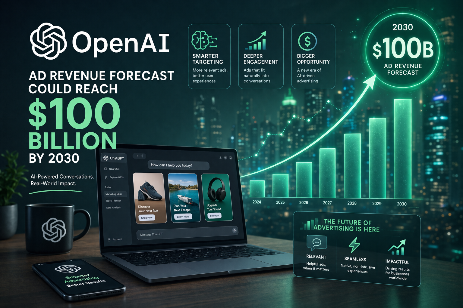 The OpenAI ad revenue forecast is drawing attention as the company reportedly expects to generate $25 billion this year and scale to $100 billion annually by 2030.